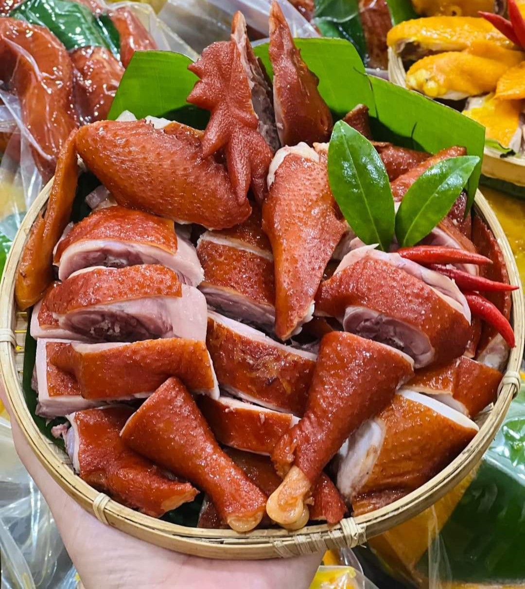 Khác với gà luộc hay gà quay truyền thống, gà được ướp đậm gia vị Đông Á như xì dầu, ngũ vị hương, gừng, tỏi, hoa hồi… rồi ủ chín từ từ, giúp từng thớ thịt ngấm đều, mềm mại mà không bị khô. Lớp da gà óng ánh màu cánh gián đặc trưng, dậy mùi thơm quyến rũ, cực kỳ kích thích vị giác.
