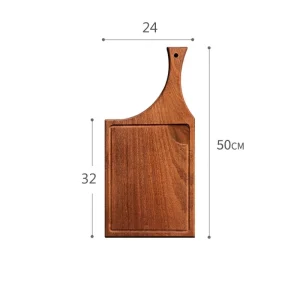Thớt gỗ ngoài việc sử dụng như thớt thông thường, bạn có thể dùng làm khay đựng pizza hoặc steak, kể cả bánh ngọt. Khay gỗ nguyên tấm hình chữ nhật với tay cầm dài được sử dụng rất tiện lợi!