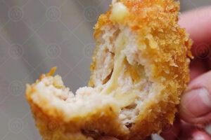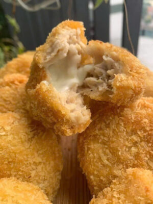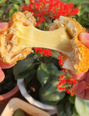 Nem Chua Phô Mai Rán – lớp vỏ vàng giòn, nhân phô mai tan chảy, kết hợp hài hòa vị chua nhẹ tinh tế.
